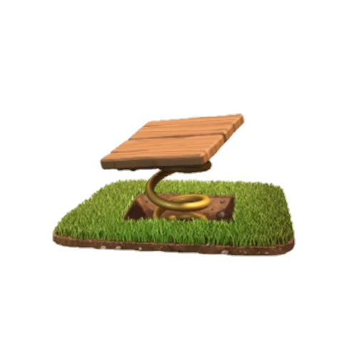- Trampas con muelle: Se activan al ser pisadas y lanzan a varias tropas rivales fuera del juego. No afectan a P.E.K.K.A.s, gólems, héroes y objetivos voladores.